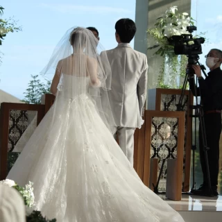 天井が高く、晴れていると空が見えてとても綺麗透明感のあるチャペルだった白を基調としたチャペルで、新郎のシルバーのタキシード、新婦のウエディングドレスともよくマッチしていた。映写できるところが2-3箇所あり、大人数のゲストでも大丈夫階段があり、お色直しはそこから登場で盛り上がった披露宴会場に大きな窓があった。締めがご飯で美味しかったスープに細長いパン?クラッカーがついていたが食べ方がよく分からず……でもどれも美味しかった。式場まではシャトルバスがあったので、それで向かった。シャトルバスがある出口がどちらにあるのか分かりにくかった特に問題はなかった。貸切感、リゾート感があって良かった暗くなってからも、ライトアップが綺麗だったシャトルバスの時間がいくつかあって便利だった詳細を見る (336文字)