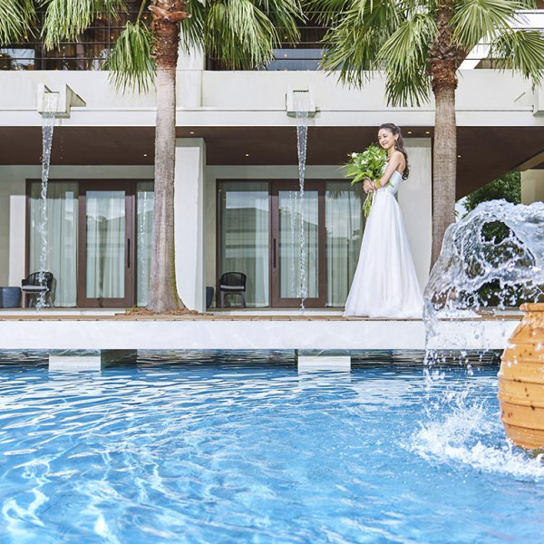 | ガーデン演出 | 有り圧巻の360°ウォータービュー。一歩足を踏み入れると別世界が広がる『アクアテラス』。風に揺れるヤシの木の葉音、美しく流れる滝が心地よい水のリズムを響かせ、全ての人を特別な時間へ誘います。 |