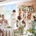 「1.5次会」とは披露宴と二次会の中間のパーティスタイルのこと。海外挙式やリゾート婚を行ったカップルが開くことが多く、披露宴よりもカジュアルな形式や演出が特徴です。また、親族のみの挙式の後に、親しい友人などを招くお披露目パーティなども含まれることがあります。ビッフェスタイル、着席スタイルのどちらも対応できるケースが多く、パーティ進行に合わせて選択するとよいでしょう。