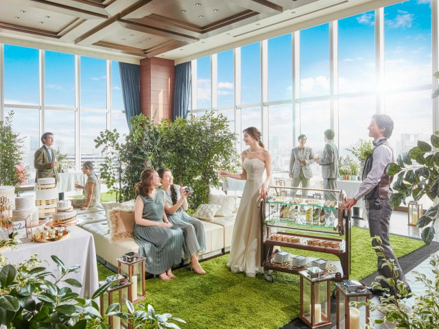 | ガーデン演出 | 有り全天候型なので、天候に左右されずにやりたい演出ができる◆地上150mでの天空デザートビュッフェはゲストの方お喜び間違いなし! |