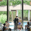 水や緑が彩る「別邸 SUISAI」。緑も豊かに新しく登場したこの会場は、2名~40名までご案内が可能。26年12月までの挙式ご検討の方が対象となり、親しい方とのご結婚式検討の方におすすめのプラン。