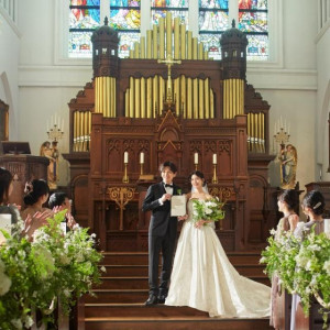 おすすめ ポイント | 昼は自然光を取り入れるステンドグラス、夜はライトアップされる大聖堂挙式はドラマのようなロマンチックシーンを実現 |