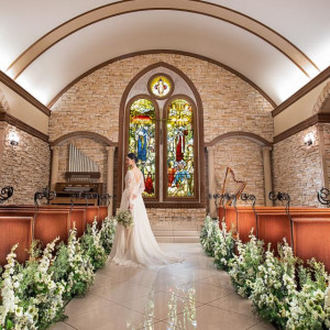真っ白なドレスが映えるステンドグラス輝くチャペルで永遠の愛を誓います