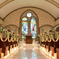 | おすすめ ポイント | 吹抜けのアーチ型天井とステンドグラスが印象的! ハープ&オルガンの生演奏がおふたりを祝福します。 |