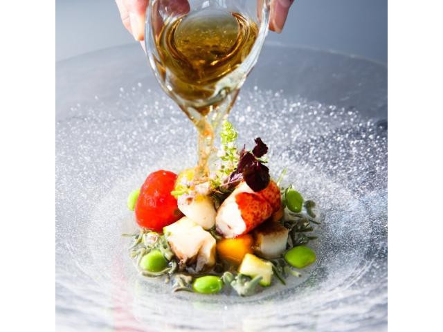 ミシュランガイドで星を獲得したシェフが作るコース料理が試食可能!オープンキッチンから提供される料理は、五感で楽しめ、実際に結婚式で使用している黒毛和牛や旬の食材を使用。ゲスト目線で試食をしてみよう♪