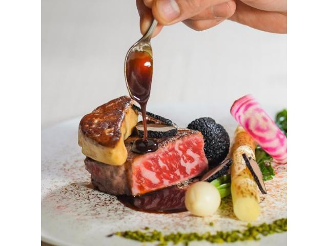 ミシュランガイドで星を獲得したシェフが作るコース料理が試食可能!オープンキッチンから提供される料理は、五感で楽しめ、実際に結婚式で使用している黒毛和牛や旬の食材を使用。ゲスト目線で試食をしてみよう♪