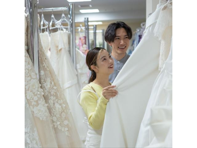 【圧巻の衣裳点数がズラリ!館内衣裳サロン見学】館内に併設されたドレスショップをご案内♪豊富な種類のドレスから花嫁に合った運命の一着に出会えるかも。ご両親の衣裳もご優待価格でご提供可能です