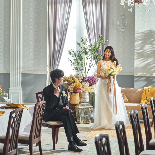 貸切邸宅で充実したおもてなしの1日をお過ごしください。挙式披露宴後にそのまま二次会も可能!ウエディングに必要なアイテムが揃った充実プラン。