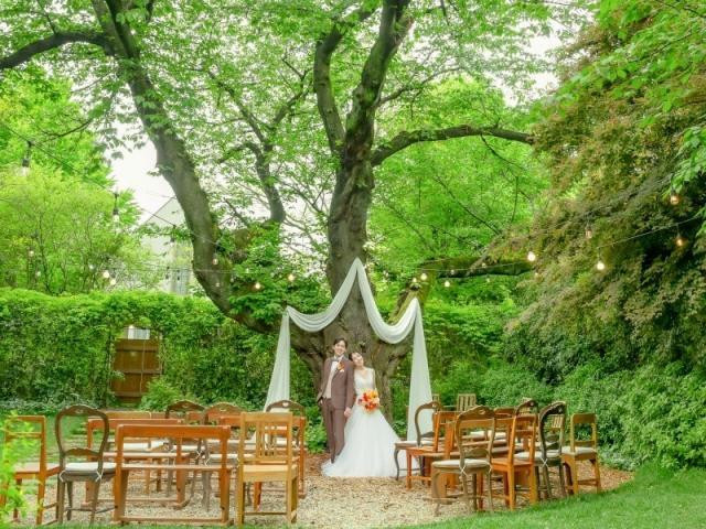 | おすすめ ポイント | 樹齢100年以上の桜と椎の木の下でのガーデン挙式は一生の想い出に |