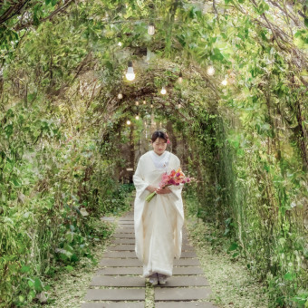 緑×白無垢でより和装が映える写真に