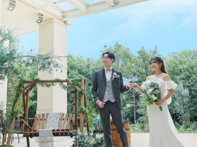【2500坪の広大な敷地】ガーデンと一続きの光あふれるバンケットが、先輩カップルから大人気です。ナチュラルな雰囲気を活かして、二人らしいコーディネートをご提案します♪ペットと一緒に過ごすのもOK!