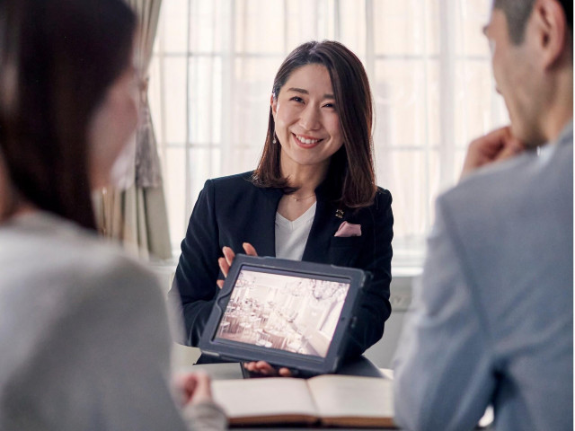 【当日をイメージしやすい丁寧なカウンセリング&ご案内】会場向かいに佇むウェディングサロン。会場の空き状況、ご予算、当日までのスケジュールについて、経験豊富なプランナーがご要望をしっかりとお伺いします。