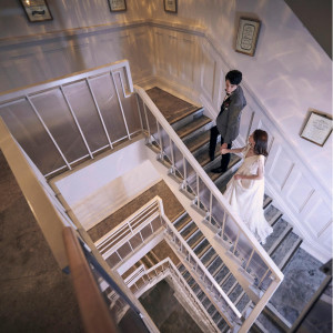 旧露亜銀行から受け継がれる大理石の大階段は、チャペルへと続くバージンロードに