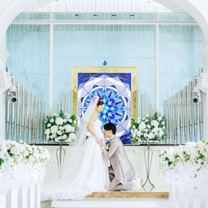 | おすすめ ポイント | 純白のチャペルでの感動セレモニー。20m総大理石のバージンロードの先にジュエリーをあしらったロイヤルブルーのステンドグラス。純白のチャペルは花嫁憧れの場所。 |