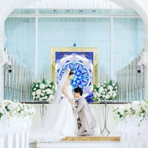 おすすめ ポイント | 純白のチャペルでの感動セレモニー。20m総大理石のバージンロードの先にジュエリーをあしらったロイヤルブルーのステンドグラス。純白のチャペルは花嫁憧れの場所。 |