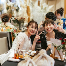 ジャポナイズリサージュでは、ゲストのみんなと料理を一緒に楽しめながら過ごせるのが魅力です!主役でありながら、気を張りすぎず、堅苦しくなりすぎず、本当にお2人とゲストが一緒に居る時間で、沢山の笑顔のシーンが残ります。お2人だけが!ではなく、ゲストだけが!でもなく、お2人とゲストが一緒に楽しめる!そんな結婚式でした!