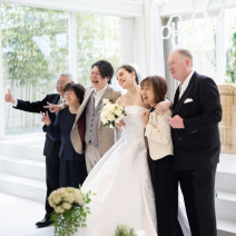 ゲストの皆様に幸せのおすそ分けの気持ちで、ご両家のご両親と揃って6名で