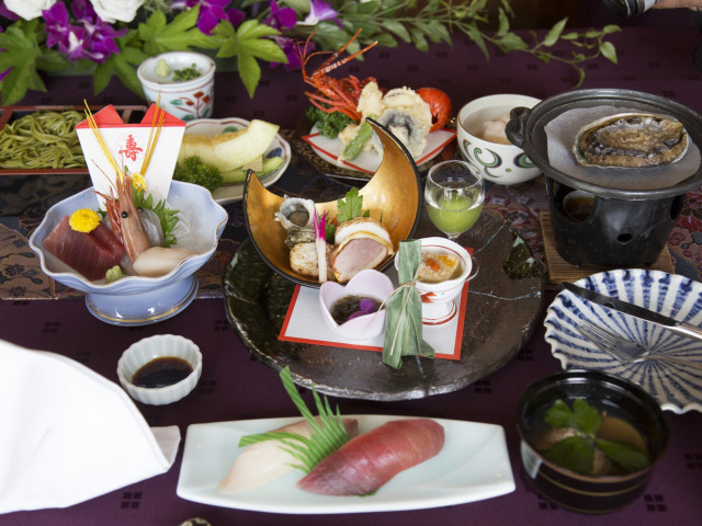 地産地消に取り組み、専属板長が房総の「海の幸」「山の幸」をふんだんに盛り込んだ会席料理をご提案。彩り豊かな美味しい料理でおもてなし。専属プランナーが当日までの流れを親切丁寧にご案内いたします。成約後の試食特典も好評をいただいております。