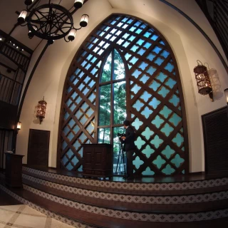 天井の高いチャペルで格子窓からの光がすごく素敵です