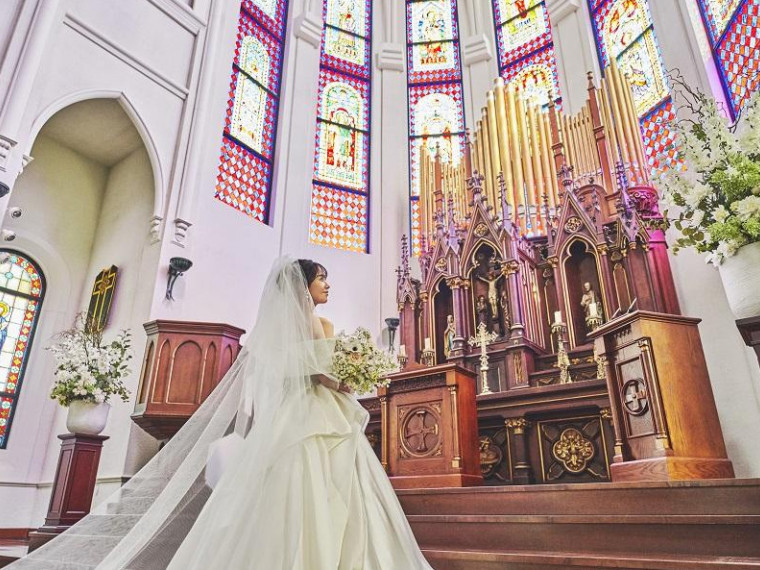 | おすすめ ポイント | 20mのバージンロード・ヨーロピアンアンティークのステンドグラス・祭壇・聖歌隊の生演奏 |