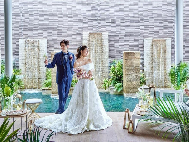 街中とは思えない自然豊かなロケーションが魅力です。大きな窓から広がる美しい水辺の景色が、特別な空間を演出します。チャペルは天井高20Mと開放感があり、自然光が差し込む明るい雰囲気が特徴です。また、シェフが手がける地元食材を使った料理は、ゲストからもご好評をいただいています。美しい景色と上質な料理で、思い出に残る一日を過ごせます。
