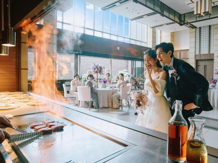 ノートルダム北九主ではすべての披露宴会場にオープンキッチンをご用意しています。