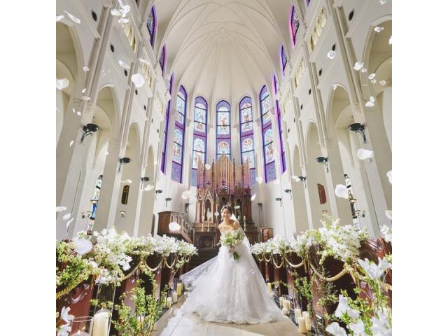 | おすすめ ポイント | 20mのバージンロード・ヨーロピアンアンティークのステンドグラス・祭壇・聖歌隊の生演奏 |