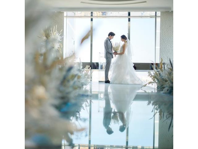 【リニューアル★美しい眺望をのぞむチャペルで入場体験】◆地上100m・大空へと続くような開放感に満ちた純白チャペル ◆厳かな教会式・アットホームな人前式どちらもOK◆フェアではシアタースクリーンを体感