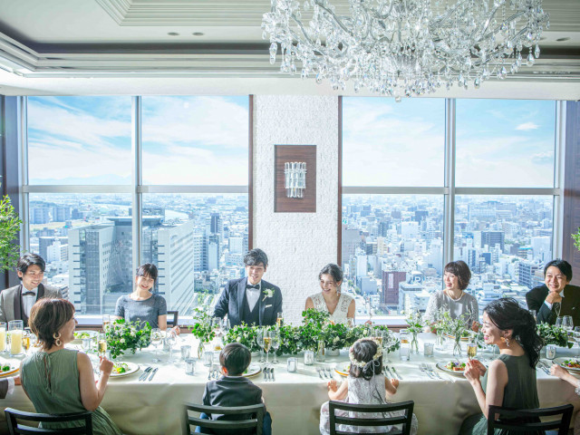 - 会場コーディネート展示- 【1フロア完全貸切!ゲストのおもてなしにこだわった会場】バリアフリー・101Mの絶景を体感できる当館。設備面も、景色や料理の演出でもゲストのおもてなしを考え抜いています。