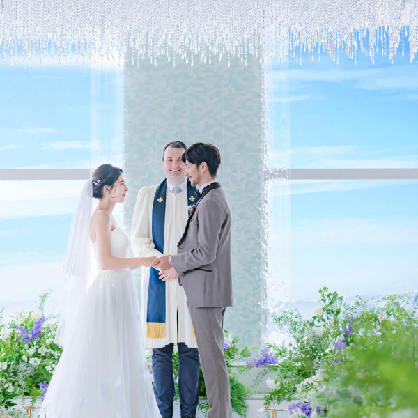 地上101Mからの圧巻の景色を体感!天空チャペルの挙式体験&口コミ高評価☆シェフ厳選のA5和牛やオマール海老を使用した豪華6品の無料試食も楽しめて、花嫁に嬉しい衣裳48万円分のプレゼント付きフェア