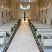 【挙式会場について】白を基調としており、また、すっきりした印象で窓から見える緑もとってもきれい。追加の飾り等もしなくても十分映える式場でした。雨の日に挙式の会場で前撮りを行いましたが、それでもとても綺麗でした。結婚式当日は晴れましたが、雨の日でも変わらず窓からの光の感じがきれいに見えました。お天気に左右されない挙式会場だと思います。約80名ほど来ていただいたのですが、ちょうど埋まったかなという印象。80名ぐらいがちょうどいいんじゃないかなと思いました。人いっぱいって感じです笑床が反射するのでとてもきれいです。なにより、他の会場にはないマザーズロードがあるので、父だけではなく母も一緒に歩けます。新婦で母親に思い入れがある方はとてもいいプランだと思います。ベールを上げるだけではなく、一緒に歩けて良かったと思いました。コスメブーケトスをしました。一回挙式会場退場して、すぐにまた中に入る感じでスタートします。別のところで投げたいなどが希望ある方は向いてないかも。また、会場は大きいわけではないため、集合写真等は撮れないです。重要視している方は合わないかもです。ただ、プランで希望をすれば、なるべく大人数が写るように写真を撮ろうとしてくださいます。コスメブーケトスをしたのですが、そのご提案を打ち合わせでしてくださいました。【披露宴会場について】大きなシャンデリアが特徴でゴージャスめな会場。ウェルカムスペースももともとレコード?などが飾っており、大人な雰囲気で素敵。会場は3つほどあり、ガーデンつきもありましたが、ブルーノクリスタルは大きなシャンデリアがとてもきれいでだったため、ここに決めました。約80名(76名)が入りましたが、ドレスを着た私は問題なく通れたので大丈夫です!ただ呼ぶなら80名が限界だと思います。他の式場よりも机が小さいです。1机7名まで。7名いれると隣とだいぶ近め。ただこれは広々したい方にはデメリットですが、隣通しだけではなく、向かい側の人達と距離があまり出ないため、卓の方のお話がしやすいというメリットでもあります。私はこちらはメリットに感じました。実際乾杯がしやすそうで盛り上がっていました。会場の色合いはピンク?とか紫、というイメージ。もちろんお花の装飾でお好きなカラーに寄せることは可能です。秋婚だったかつ、自分のドレスが同化しすぎないように、オレンジなどを多めに入れてもらいました。ナチュラルな感じがいい方は地下のお部屋のほうがいいと思いますが、ちょっと豪華目な挙式をイメージの方、the結婚式!をイメージの方はおすすめです!私はカラードレスがピンクだったのでお部屋にもあっていたんじゃないかなと思います。動画を流すスクリーンプロジェクターは1か所だけでした。そんなに大きな会場じゃないのでまあまあまあという感じで妥協をしなければいけない点かな。【スタッフ・プランナーについて】最初の見学での案内のときの説明と、実際の担当プランナーとの話は少し食い違う点があるので少し注意です。担当と話しているときに!?ということがあったので、メモしておいたらよかったかなーと思いました。月曜日と火曜日が定休日でその時は連絡が取れないので注意。営業時間内であればその日中にちゃんとメールでも電話でも連絡が返ってくるため、しっかり対応してくださろうとしてくれている印象です。プランナーさんはしっかりしています。私の担当はもう一つの提携会場と2つを行き来している方だったのでお忙しそうで、連絡を入れた際にすぐ出られないことが多かったです。でも、その日中に時間作って連絡をくださっていました。赤ちゃん連れでの結婚式だったため、打ち合わせなどは日程など考慮していただけました。オンラインでの打ち合わせも可ですが、やっぱり対面のほうがいいかな!提案が上手な方が多い印象です。装花や写真、エンドロール系などのお話の時なども、無理やりサービスを押し売ってくるなどはないです。迷っていたらもちろん背中を押しては来ますが、うーん、となっている場合やお値段が高いプランの場合は低いほうを勧めてくれていたりもしていました。当日、おそらくまだ歴が浅いのかな?というスタッフさんが1名いたのですが、他の方でカバーしている感じを見受けました。当日のサービスはとても満足が行くので、打ち合わせして、当日を迎えるまでに「大丈夫かな…」と思っても伝え忘れ等がなければ安心して大丈夫なスタッフ揃いだと思います!カメラマンさんは盛り上げ上手な方にあたりました。子供参列が少し多めだったので、ありがたかったです。司会との打ち合わせは1回だけと最初ありますが、内容によっては後程別で2回目をしてくれます。司会の方も言葉選びがうまく、場を回すのが上手で安心できます。【料理について】真ん中の人気のプランを選びました。希望制で試食会に参加できるのですが、高いプランと真