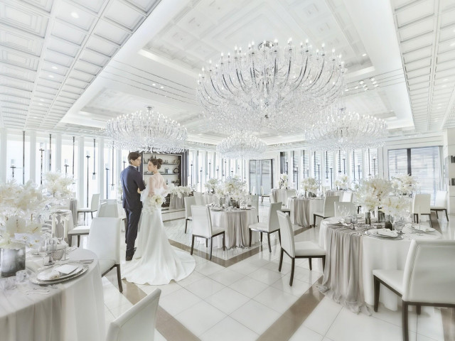| おすすめ ポイント | 高さ6メートルの天井には5万個のクリスタルが煌めき、全長18mのバージンロードにはふたりの姿が映り込み幻想的な雰囲気を創り出す |