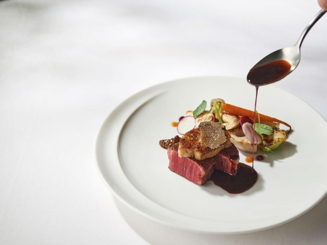 【三ツ星料理長振る舞うプレミア試食】スペシャリテ前菜&国産牛のロティ&特製デザート、上質フルコースの内容を少しずつ味わえる特選ハーフコース試食。ゲストからも好評の最高峰のおもてなしを体感。