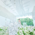 | ガーデン演出 | 有り披露宴会場の隣にあるテラスにはクリスタルプールと大階段が!サプライズ入場をしてゲストにも楽しんでもらえる |