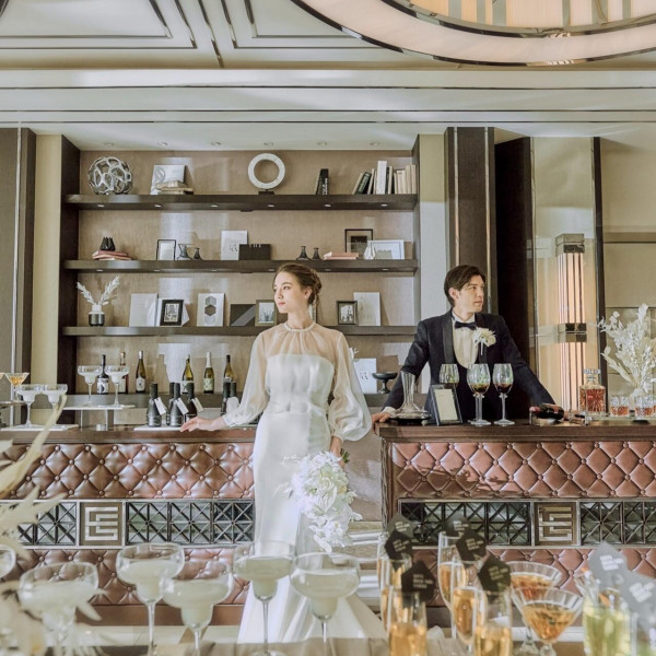 | 二次会利用 | 利用可能披露宴会場やチャペル横のホワイエにはバーカウンターやスクリーンも完備!シェフ特製の料理を味わいながら、二次会も堪能しよう |