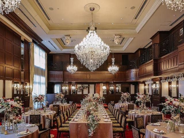 おすすめ ポイント | 天井高7mと解放感のある最大110名まで着席可能な会場【PALACE】やアットホームなPartyや会食がゆったりと約60名まで行える【HEMINGWAY】で本格フレンチにておもてなし!