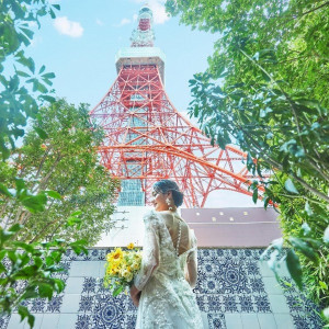 手を伸ばせば届きそうなほど近くに聳え立つ東京タワーが、おふたりの永遠の約束を見守ります。