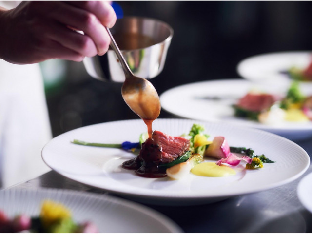 【三ツ星店で経験を積んだ料理長】仏リヨンの星付店で長く経験を積み日本に帰国後、フレンチの伝統技法に和のエッセンス(出汁や江戸前味噌、醤油、麹など)を掛け合わせたジャポネスタイルを確立、当館の祝膳を担う
