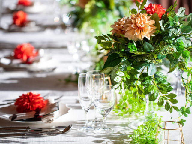 【AM来館がおススメ!本番前のコーディネート体験】会場のお花やテーブルクロス、受付セッティング案までご紹介。当日のイメージを膨らませ、ゲストも嬉しいお二人らしさ溢れるコーディネートをご提案いたします。