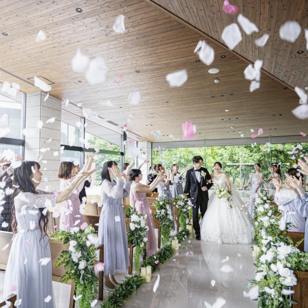 フラワーシャワー挙式の締めくくりを飾る人気のフラワーシャワー。