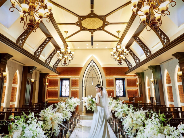 【自然光で光り輝くステンドグラス】大切なゲストに見守られながら、あたたかみ溢れるチャペルで感動挙式を。挙式本番は生演奏で美しい音の中での誓いも。オリジナリティのある和装人前式もオススメです。