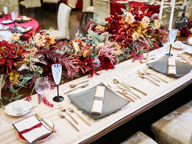 【貴族の邸宅】をコンセプトにした、ゲストがこんなの初めて!と感動する本番コーディネートを体感して!会場内も好きな色味に一から変えられるからふたりらしい空間に♪