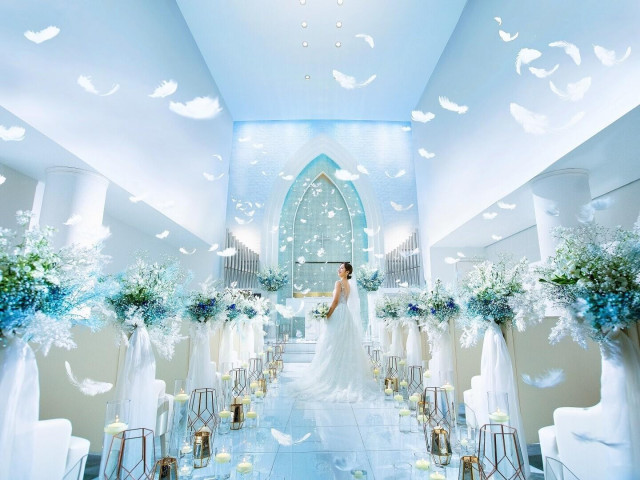| おすすめ ポイント | 高さ8メートルの天井から光の祝福が降り注ぎ、心地よい水のせせらぎと響き合う美しい歌声、ふわりと舞う羽が感動へと導くフェザーシャワー。また、お二人のお好みにあわせてLEDライトで光の演出が可能! |