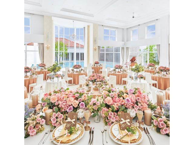 二人の好みに合わせてアレンジが可能な大人気の会場をご案内♪当日の新郎新婦様になった気持ちで披露宴会場に入場してみて♪そこにはお二人の大切なゲストが盛大な拍手で迎えてくれます。