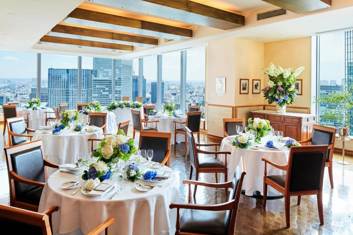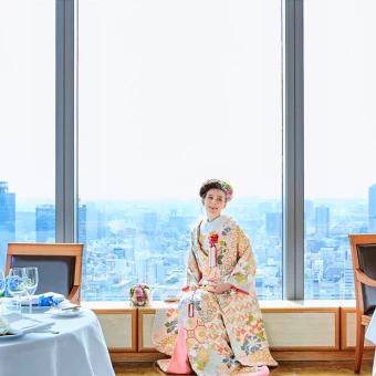 足元から天井まで続く窓からは東京駅を望む素晴らしい景色が広がります。また、午前の婚礼では明るい日差しがたっぷりと差し込み明るい雰囲気が人気です。