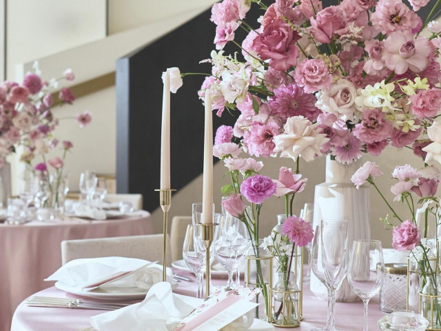 【専属のコーディネーターがご提案】装花だけでなくテーブルクロスやカトラリーなどお好みにあわせてコーディネート!おふたり専属のフラワーコーディネーターが打ち合わせを通して理想の空間を創りあげます。