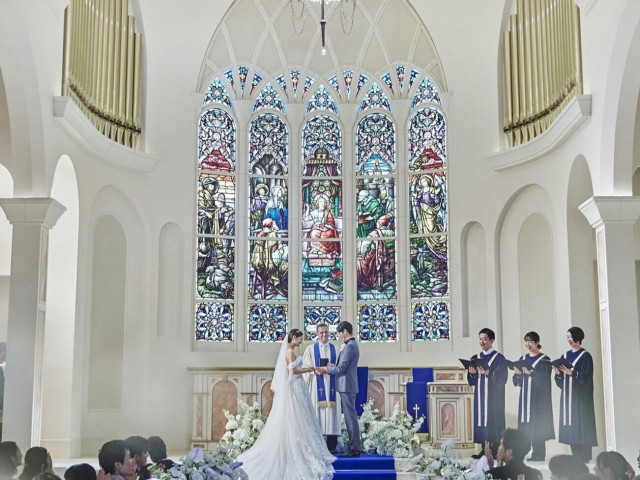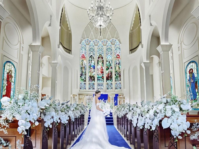 | おすすめ ポイント | 120年の歴史に包まれるステンドグラスを持つ大聖堂で、「家族の絆」を大切にした感動挙式を。ドレスが華やかに映る22mのロイヤルブルーのバージンロードに誰もが魅了される。 |