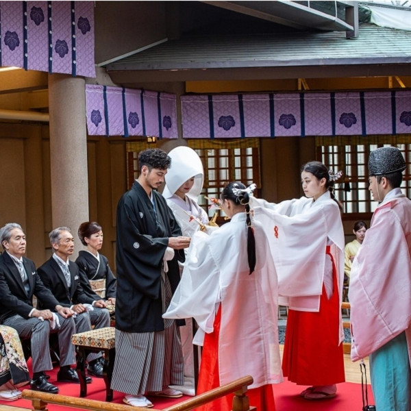 奉告祭とは、二人の結婚を神様にご報告する儀式を言います。*奉告祭+食事は平服、スタジオは和装プランです。