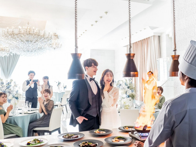 ☆ご成約頂いたカップル全組☆ ゲストから歓声もあがる人気演出、「シェフのフランベ」をプレゼント! お料理への期待も高まる嬉しい演出で銀座らしいおもてなしを☆ゲストの印象に残ること間違いなし☆