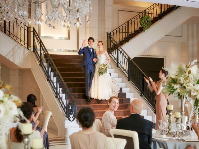 【ゲストの気持ちで披露宴体験】実際のご披露宴会場にてゲストのお気持ちになって頂き、入場シーンをご体験頂きます。圧巻のスケールでの入場も好評です♪